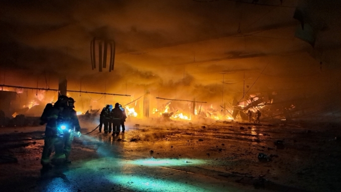 정확한 주소는 대구시 매천동 농수산물 도매시장에서 불이 났습니다. 대구광역시 북구 매천동에 소재한 농수산물도매시장. 현장에 바람이 강하게 부는.